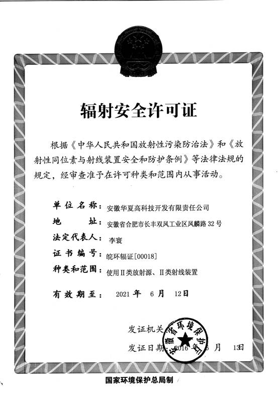2016年成功換取輻射安全許可證